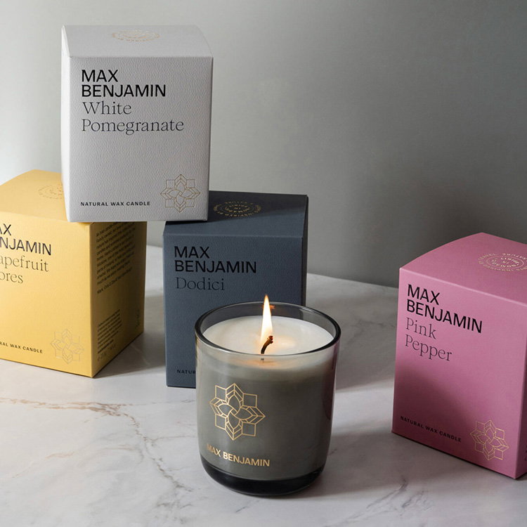 Max Benjamin’s scented candles are handcrafted in the family studio in Enniskerry on Ireland’s east coast. Each candle is poured using natural soy wax and fitted with a cotton wick that ensures a clean, even burn. With carefully composed fragrances and a burn time of at least 50 hours, the candles create an elegant atmosphere and fill the home with a soft and inviting scent.
